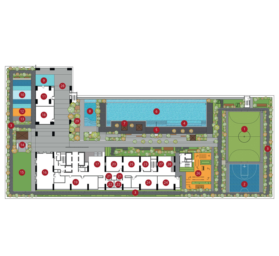 Enjoy vibrant lifestyle facilities at your fingertips. Suitable for the entire family, the facility floor is designed for healthy and balanced living.